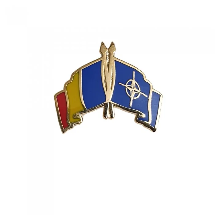 Insigna România NATO este un simbol puternic al angajamentului față de valorile comune ale apărării și cooperării internaționale. Destinată cu precădere personalului militar, această piesă este apreciată și de colecționarii care valorifică semnele distinctive ale identității naționale și apartenenței la Alianța Nord-Atlantică. Emblema reunește într-un design elegant steagul României și simbolul NATO, într-o compoziție încrucișată care reflectă unitatea și devotamentul față de misiunea comună de securitate.